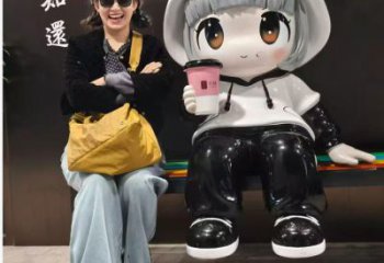 • 熊貓帽潮酷少女:不銹鋼卡通景觀里的活力符號